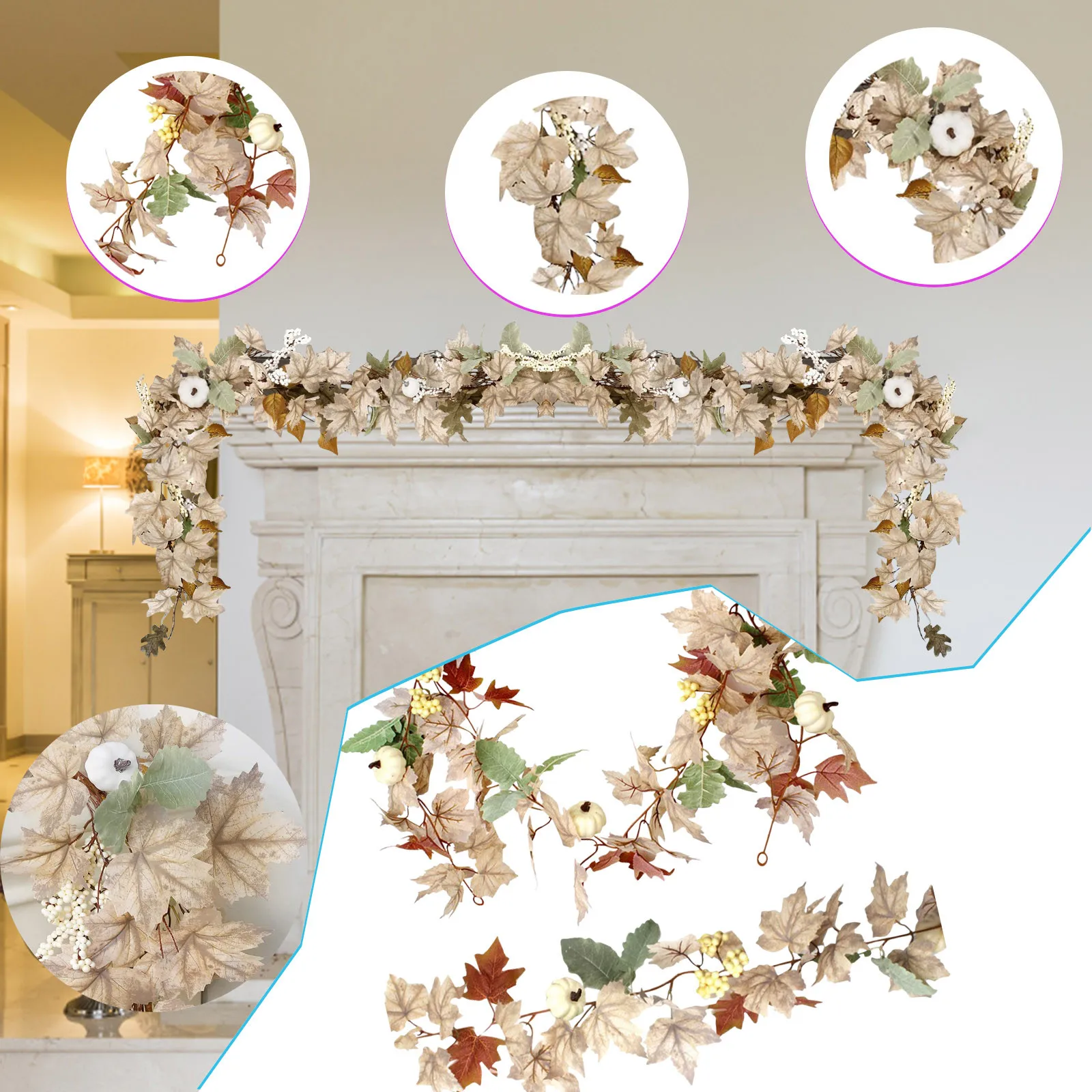 Thanksgiving Halloween Home Decorations Wreath Garland Autumn Maple Leaf Pumpkin Berry Home Party Atmosphere Setting